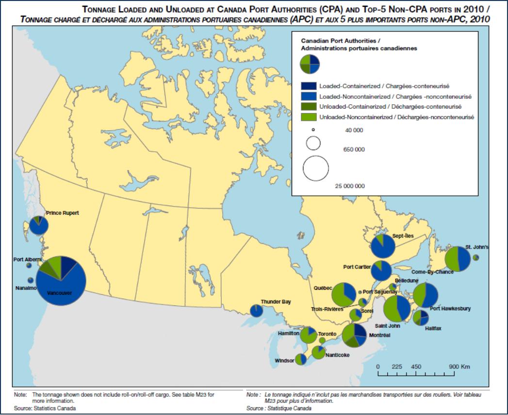 Canadá puertos mapa